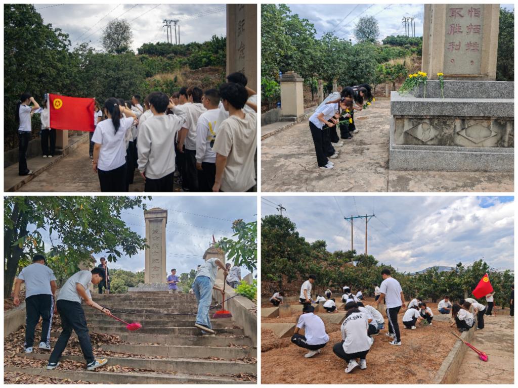 参加祭扫活动的全体师生分工协作全面清理陵园内的枯枝落叶、垃圾杂物,以实际行动守护陵园洁净,用质朴的方式表达对革命先烈最真挚的崇敬与深切缅怀,还先辈英烈长眠之地庄严肃穆。
