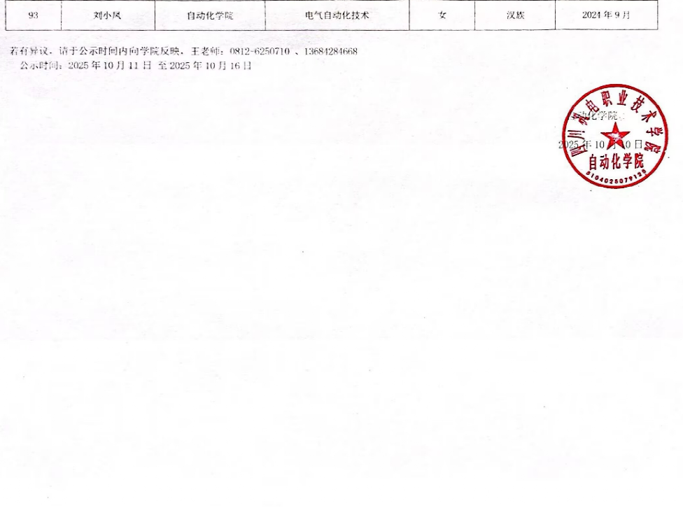 为激励学生勤奋学习,努力进取,根据(川教函693号 )《四川省教育厅关于做好 2025年高校国家奖助学金通知》文件精神,本学院严格按照公平、公开、公正和择优的原则开展国家励志奖学金评审工作。共93名同学获得国家励志奖学金。现予以公示。