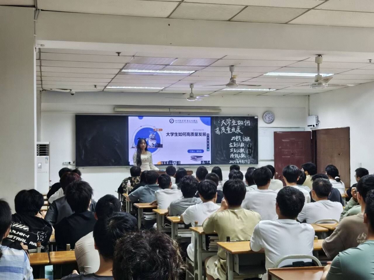 随后开展的“高职学生高质量发展”班会,则从“认知、定位、实践、行动”四个维度解析成长路径,强调“技能精进+职业适配+持续成长”的培养目标。班会讲解了岗位胜任力、行业发展趋势以及“工匠精神+创新能力”的双重要求,并引入“课堂+实训室+企业”三级联动的能力培养机制,通过“6个月技能提升清单”和学长成长案例,鼓励学生制定个人发展计划,在实践中提升综合素养。