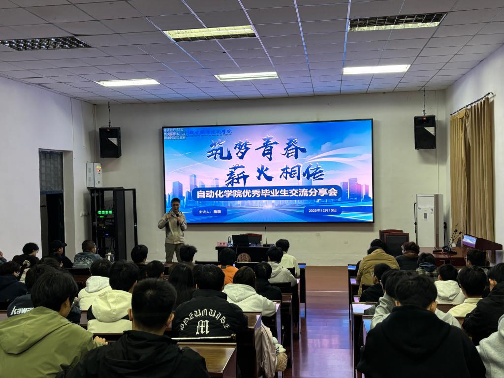 (自动化学院学生 王玉梅 审核:王静)2025年12月10日晚19:30,自动化学院“筑梦青春——薪火相传”优秀毕业生交流分享会二教309顺利举行。活动旨在搭建在校生与优秀校友的沟通桥梁,传承奋斗精神,助力学生成长成才。