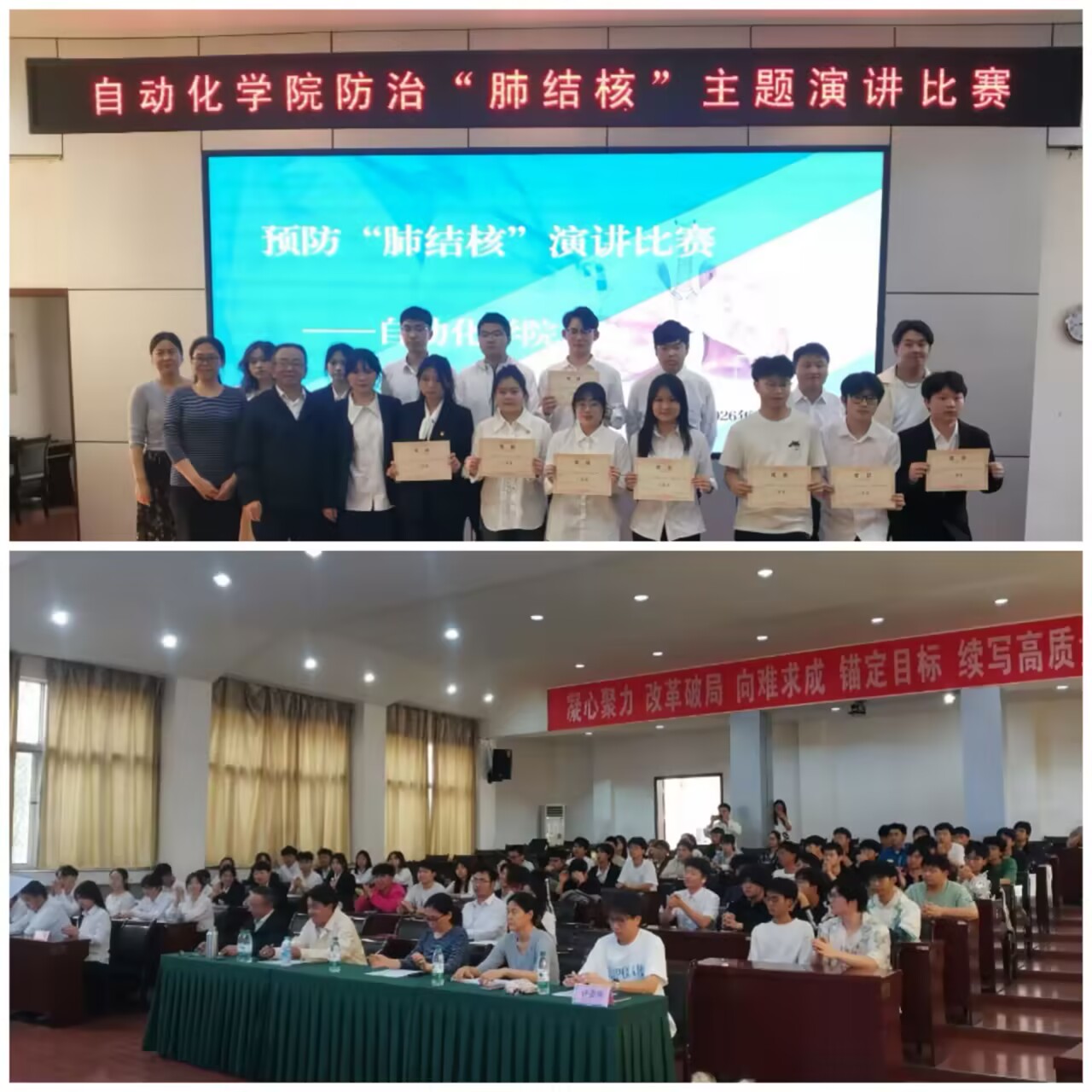 (自动化学院学生 王玉梅 审核:王静)3月12日下午3时,自动化学院在学术报告厅举办防治“肺结核”主题演讲比赛。本次比赛以“春风起跑,向终结‘结核′前行”为主题,旨在提升师生对肺结核防治的认识,倡导健康生活方式,营造全员参与结核病防控的良好氛围。