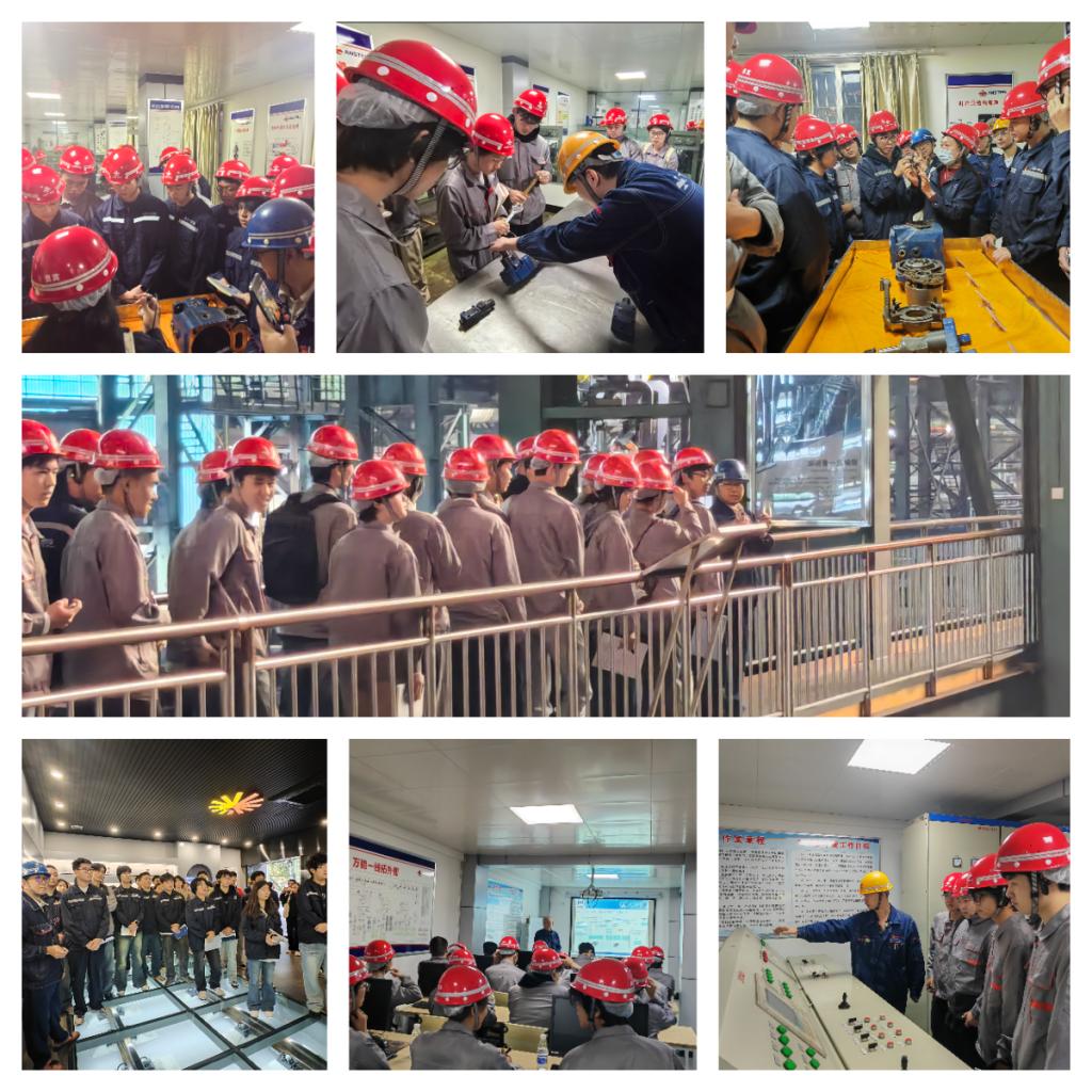 本次实习实训以重轨轧制工艺与智能控制为主题,学生在企业导师与学校专业教师“双师”联合指导下,深入全球领先的攀钢重轨生产线,全程学习钢坯加热、万能轧制、在线检测、精准冷却等工艺知识。企业导师系统讲解核心设备运行,介绍机械结构传动原理与电气控制系统逻辑设计等,帮助学生逐步构建现代化轧制生产线机电一体化集成的整体认知。在攀钢钒轨梁厂自动化实验实训室,学生们分组操作了先进的PLC控制系统与轧制仿真平台,在实践中深化对理论的理解,真正实现了从书本知识到实际应用的有效转化。
