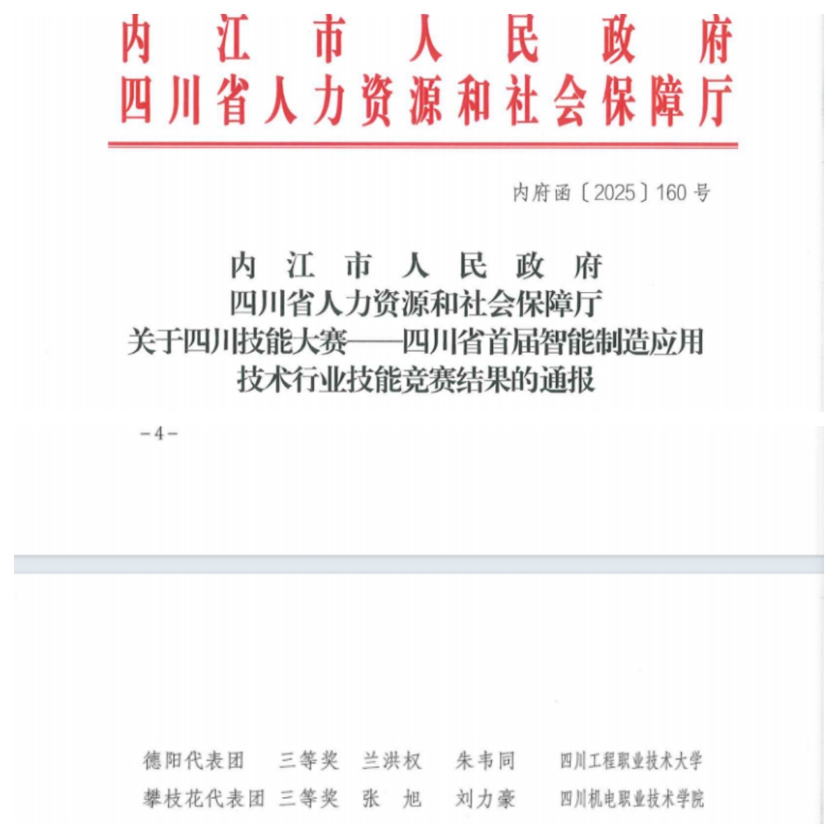(自动化学院徐敏)日前,从四川省首届智能制造应用技术行业技能竞赛组委会传来喜讯,学校自动化学院代表攀枝花市人力资源和社会保障局,组队参加四川技能大赛—四川省首届智能制造应用技术行业技能竞赛“数字孪生应用技术员”赛项学生组比赛,斩获佳绩。经两个多月精心备战与多轮激烈角逐,该院学生张旭、刘力豪从 60 多支初赛队伍、30 支决赛队伍中脱颖而出,最终以第6名的优异成绩荣获学生组三等奖,展现了该校学子在智能制造领域的专业素养和技术实力。