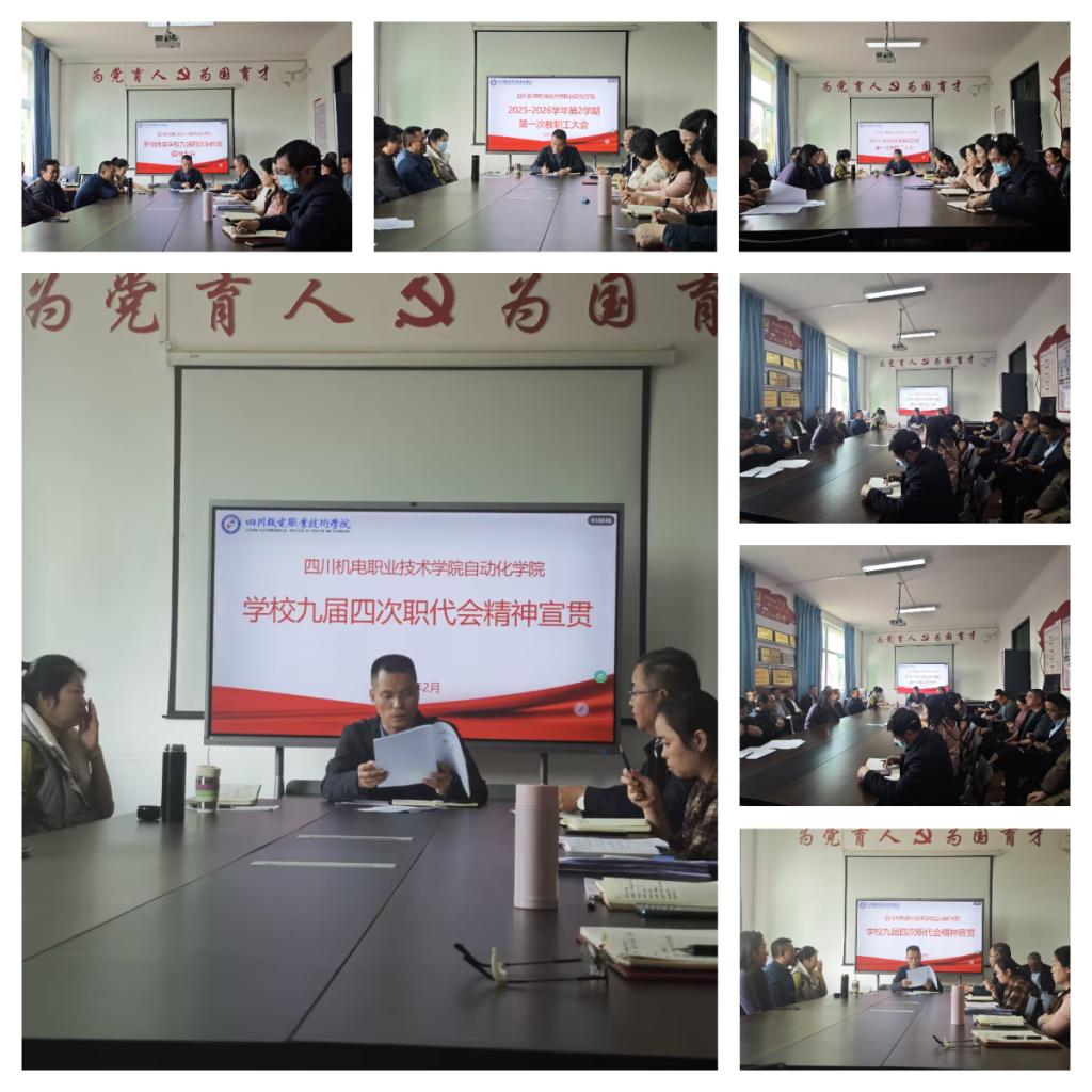 会议伊始,学院负责人佘东首先向全体教职工传达了学校九届四次职代会的核心精神。他详细解读了学校工作报告中关于未来发展的战略规划,重点阐述了涉及人才培养、科研创新及综合改革等方面的决策部署。